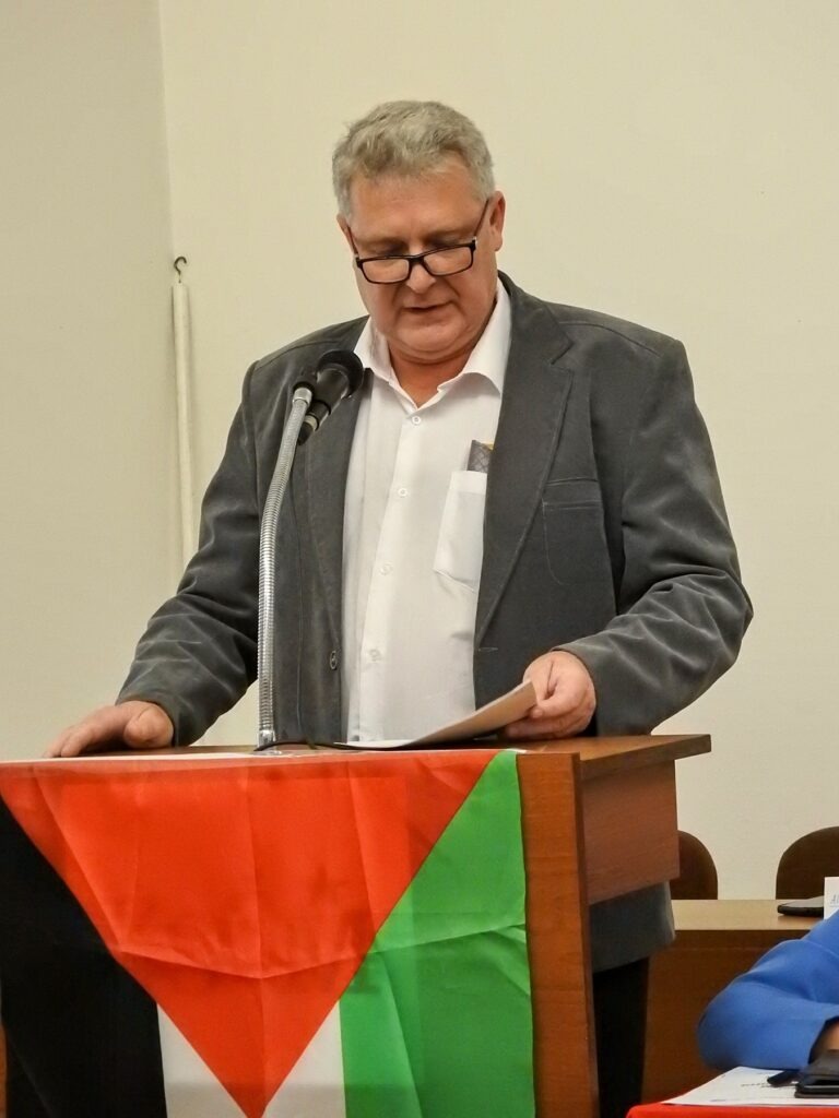 Stanislav Grospic, Vorsitzender des OSCMS, betonte die Notwendigkeit, auch heute für internationale Solidarität, für den gemeinsamen Kampf für die Rechte der Beschäftigten und gegen die Ausbeutung durch Konzerne und das Finanzkapital zu kämpfen. In seiner Grußansprache erwähnte Oliver Jonischkeit die historische Bedeutung von Wien und Prag – in beiden Städten hatte der WGB früher sein Hauptquartier. Der Gewerkschaftliche Linksblock und der OSCMS werden auch weiter gemeinsam gegen Faschismus, Krieg und Ausbeutung kämpfen.