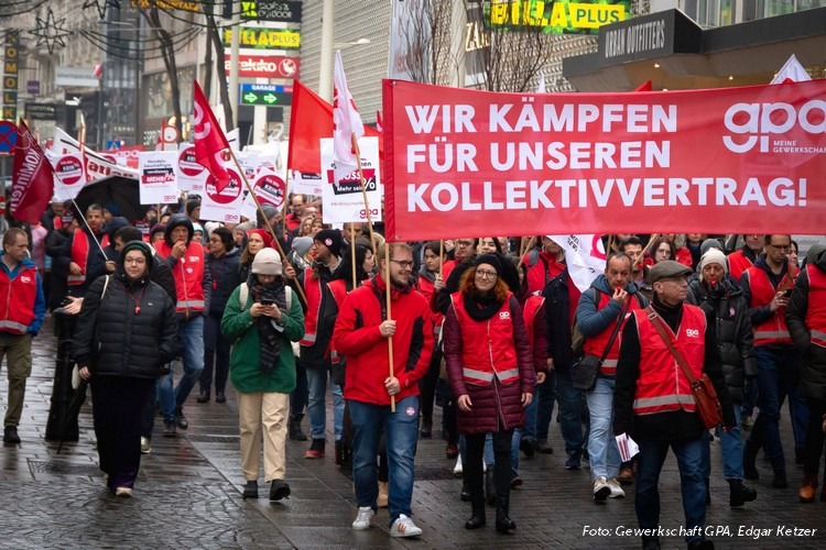 Das Nachverhandlungsergebnis ist ein Schlag ins Gesicht der Handelsangestellten. Bei einer rollierenden Inflation knapp über der ominösen Drei-Prozent-Grenze gibt es jetzt mit einem Gehaltsplus von 2,55 Prozent sogar eine Minus-Gehaltswert-Anpassung. Wenn die gpa auf ihrer Homepage zu diesem Abschluss meint, dass damit mit diesem Abschluss “Stabilität und Planbarkeit gesichert wurden” hat sie insofern recht, dass es damit sowohl die Stabilität der Unternehmensprofite und die Planbarkeit einer negativen Gehaltspirale gibt. Darüber täuschen auch die kosmetischen Rahmenrecht-Verbesserungen nicht hinweg.